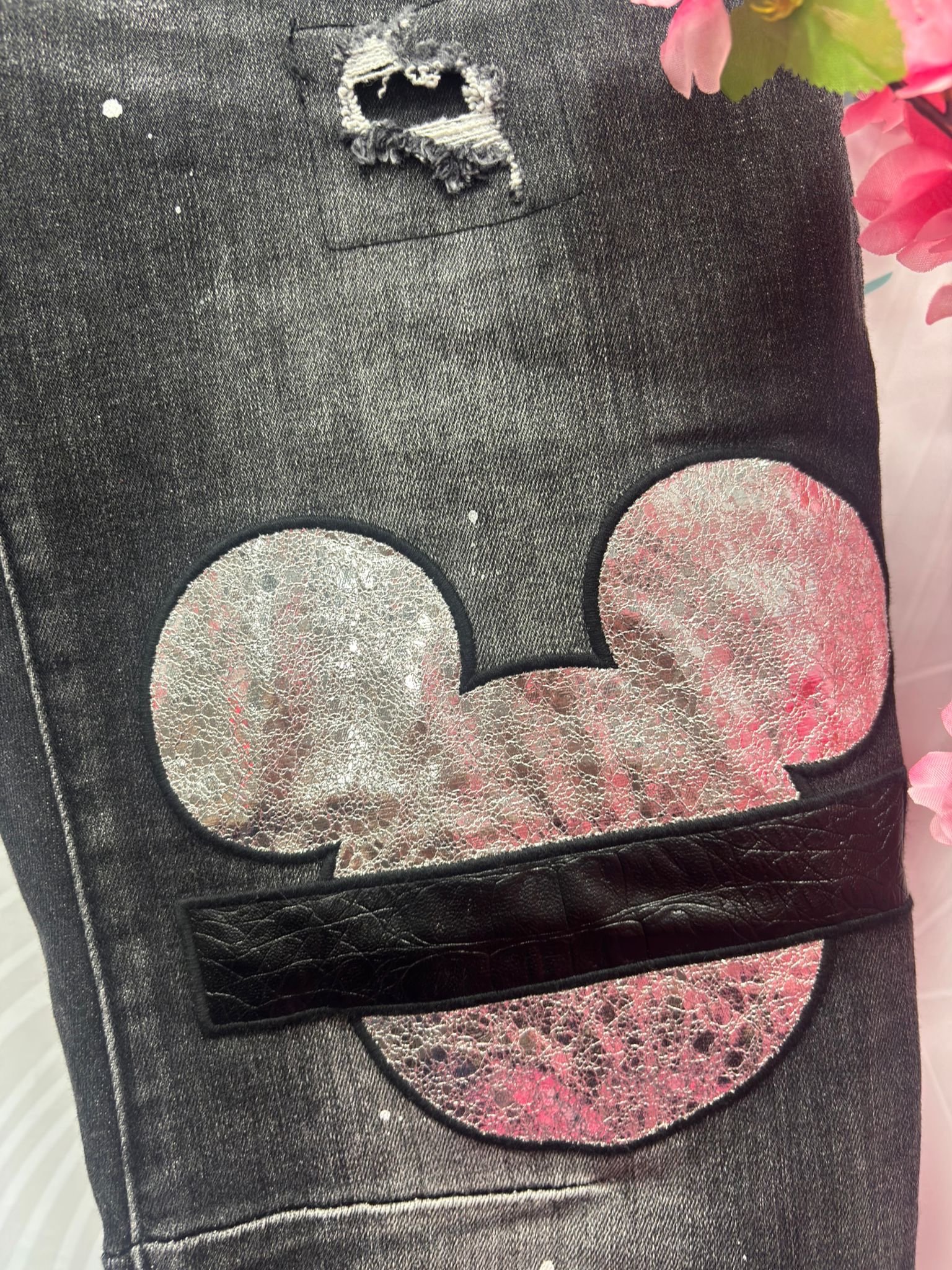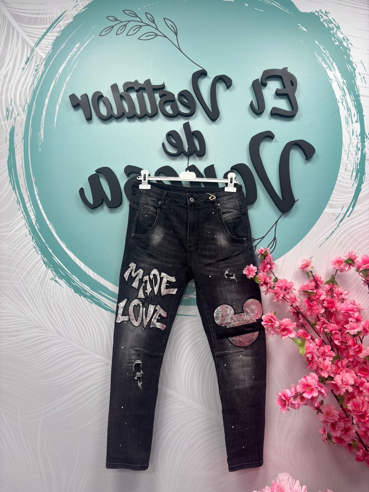 Pantalón Mickey pitillo con detalles en lurex: moderno, cómodo y con un brillo sutil que lo hace especial. Ideal para dar un toque diferente a tus looks casual.