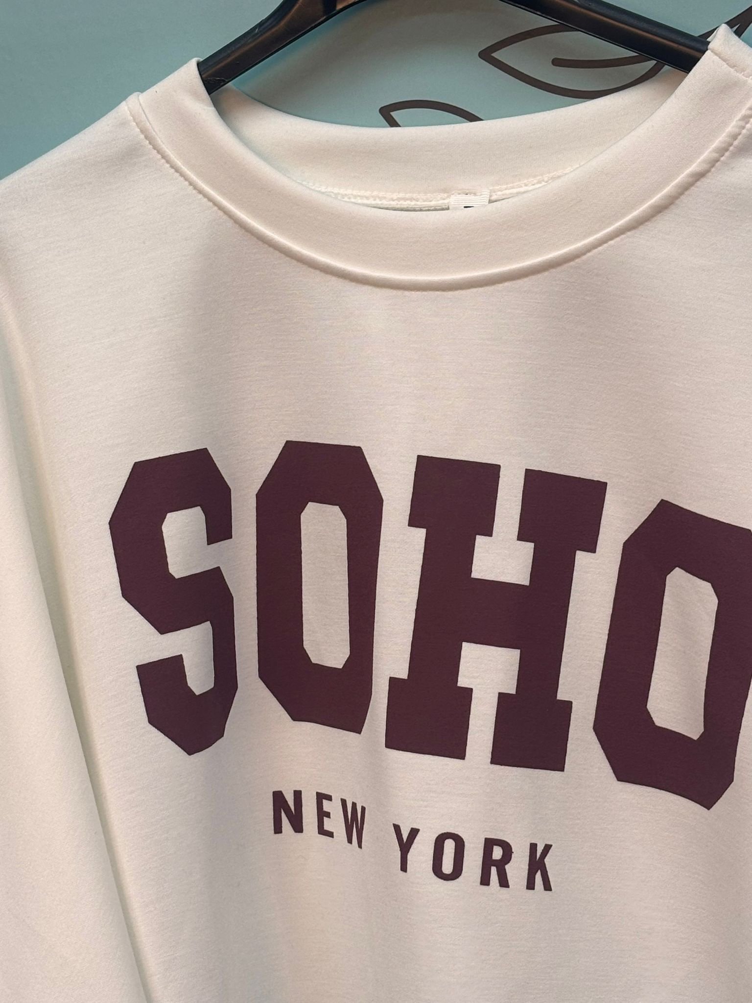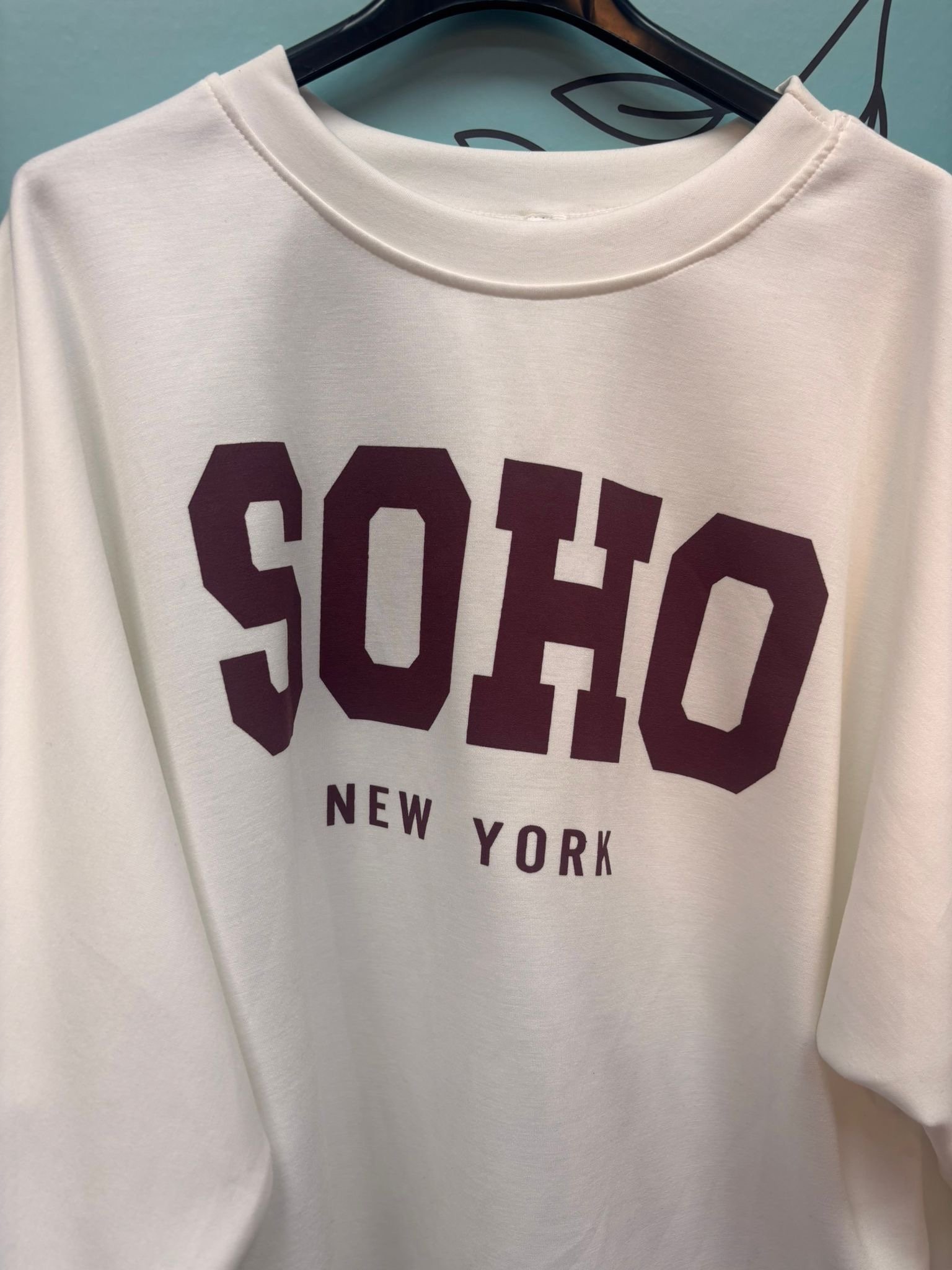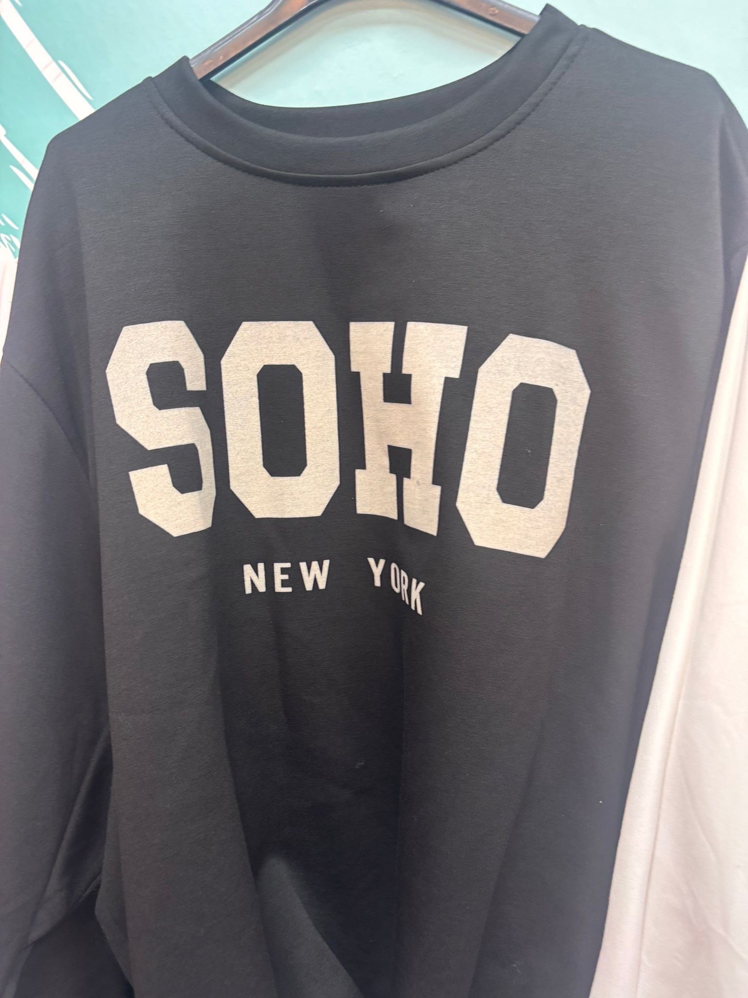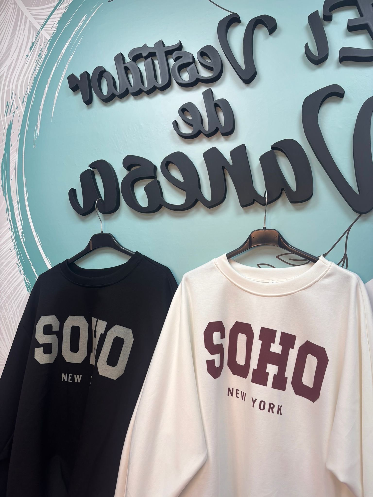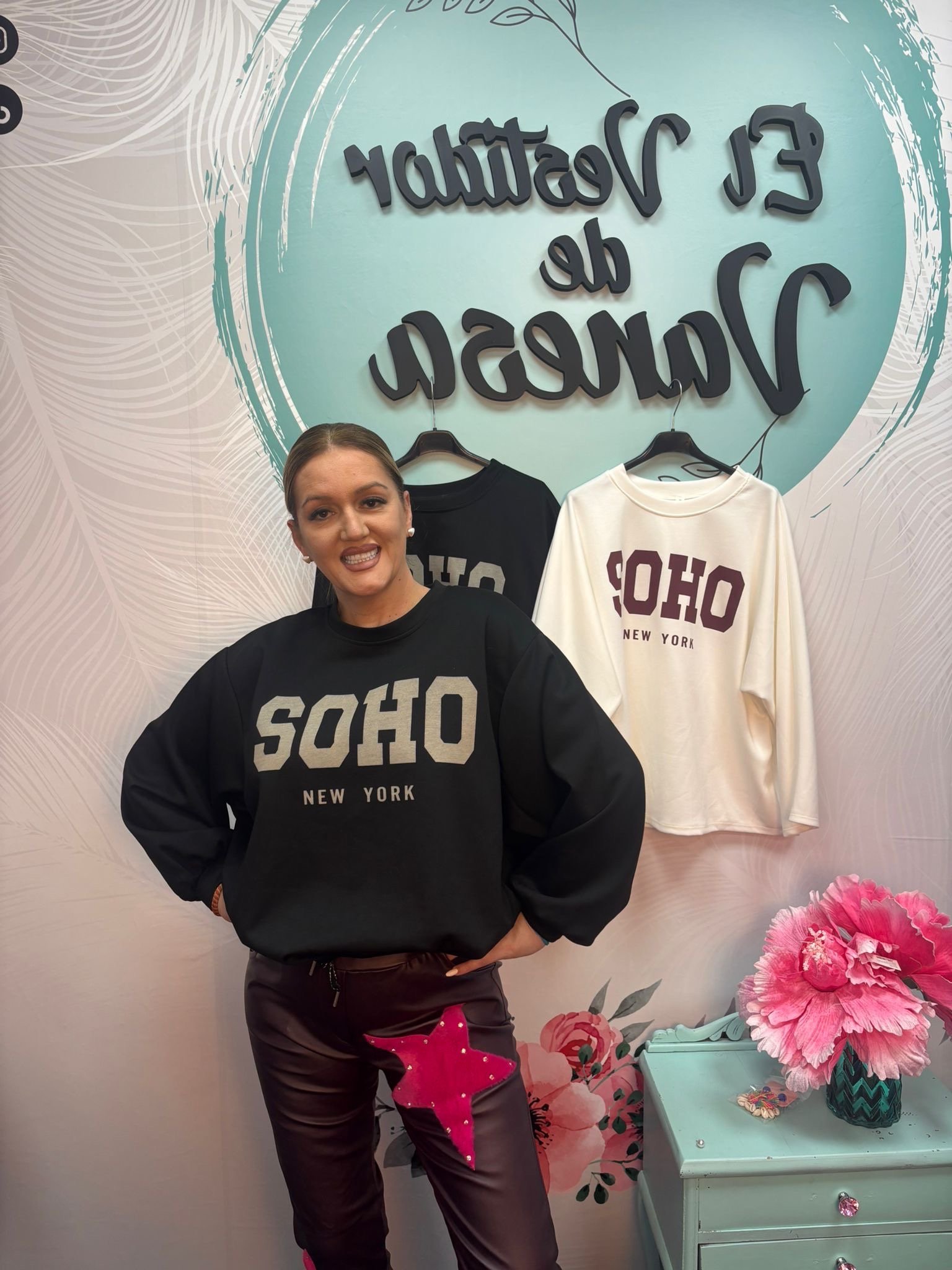 Siente la comodidad con estilo con nuestra sudadera Boho Chic Capa Aire . Su diseño bicolor y las letras SOHO NEW YORK le dan ese toque urbano que combina con todo, mientras su corte suelto tipo capa aporta ligereza y movimiento. Ideal para los días relajados, paseos o looks casuales con personalidad.