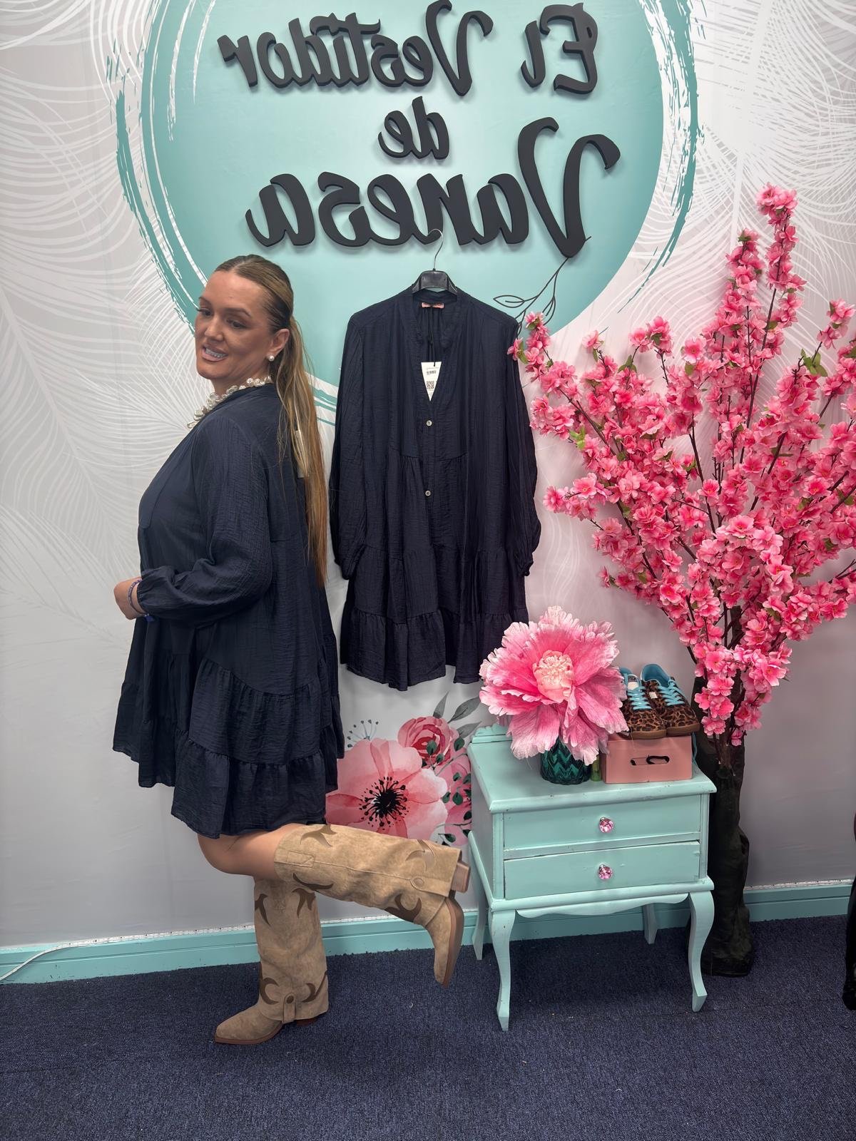 El vestido corto evasé es la prenda ideal para lucir cómoda, favorecida y con mucho estilo. Su corte en línea evasé realza la figura sin ceñirse, creando una silueta fluida y ligera que se adapta a cualquier ocasión.